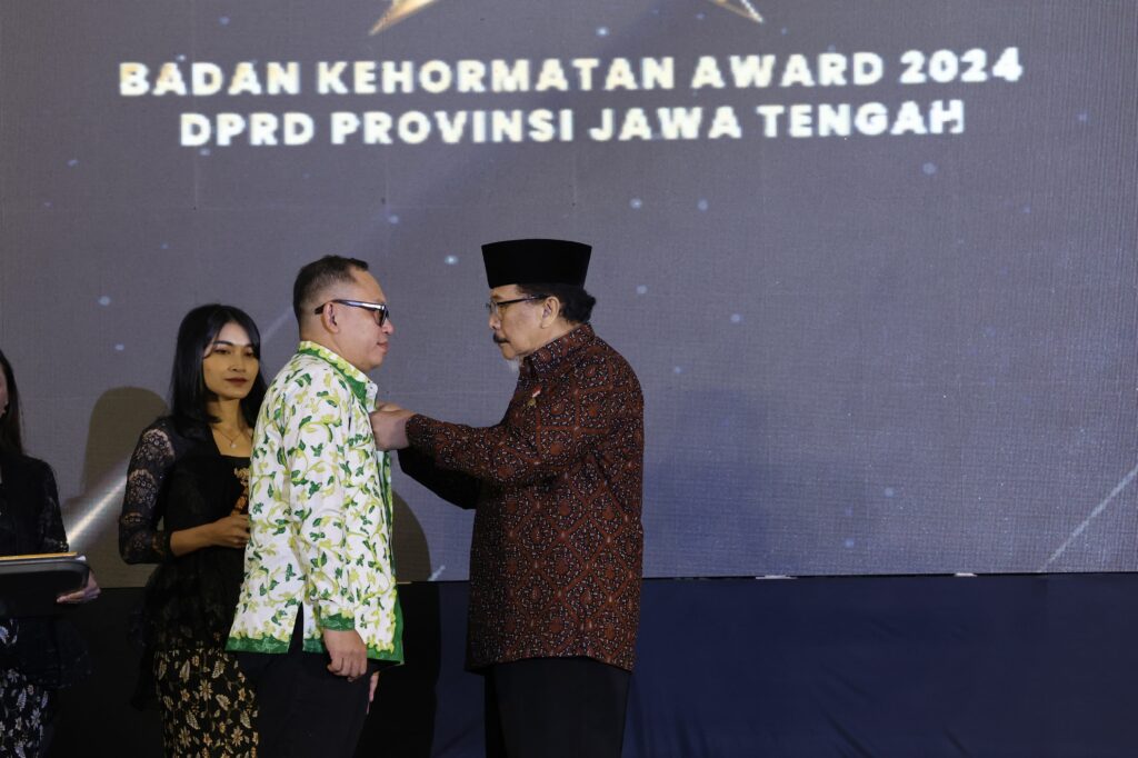Kemudian dilanjutkan dengan penyerahan tanda kehormatan kepada Almarhum Bambang Kusrianto (Mantan Ketua DPRD Provinsi Jateng) dan Almarhum Quatly Abdulkadir Alkatiri (Mantan Wakil Ketua DPRD Provinsi Jateng). Keduanya itu menerima penghargaan kehormatan sebagai sosok ‘Yang Menjalankan Tugas Melampaui Panggilan Tugas & Kewajiban sebagai Anggota DPRD Provinsi Jateng Periode 2019-2024.’ (ariel/priyanto)